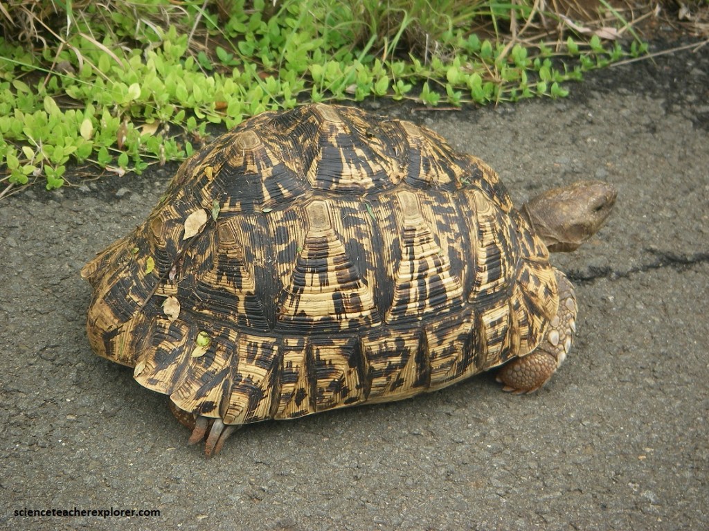 Pictured above, on the road between the Mantuma Camp and the kuDiza Pan is a large number of large Leopard Tortoises with domed carapaces or shells. The shell of young animals is yellow with black spots, becoming darker and more streaked and blotched black with age. They usually live for 30 years, possibly up to 75 years.